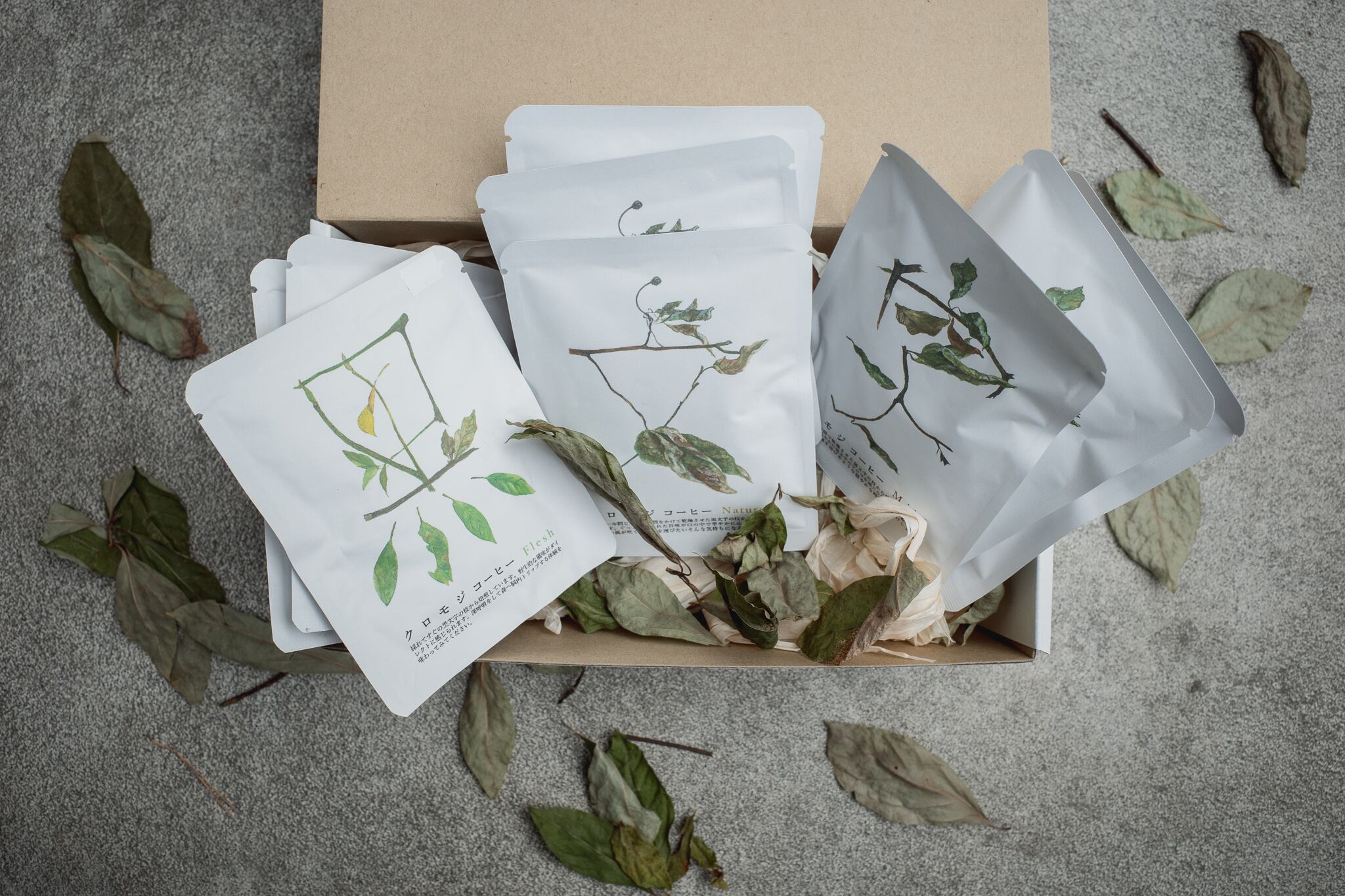 クロモジコーヒー Fresh(黒)/ Natural(文)/ Mild(字) の3種類が3つずつ(計9個)入ったセットとなっております。